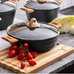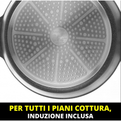 Tegame 36 cm antiaderente, 4 strati a base d'acqua con 2 manici effetto legno e coperchio in vetro. Con fondo induzione adatto a tutti i piani cottura, induzione inclusa. PFOA e Nichel Free.