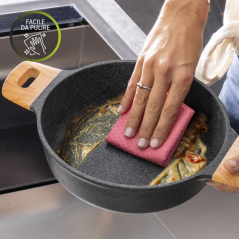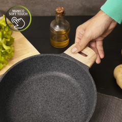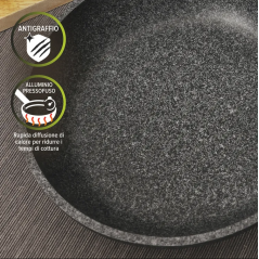 La linea Eco Wood è caratterizzata da un rivestimento antiaderente a 4 strati a base d'acqua che evita che i cibi si attacchino, per una cucina senza grassi aggiunti e rispettosa dell'ambiente. L’alluminio pressofuso che compone il tegame permette una diffusione perfetta e uniforme del calore, garantendo alle pietanze una cottura omogenea. Con manici effetto legno, coperchio in vetro e rivestimento privo di PFOA e nichel free, è sicuro per la tua salute. Con fondo a induzione dots a bottoni è adatto a tutti i piani cottura. Si consiglia di consultare la compatibilità del piano a induzione prima dell’acquisto. Si consiglia il lavaggio a mano per preservare la particolare finitura dei manici. Diametro: 36 cm. Dimensioni con manici: 48,5x37,2x15 cm.