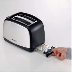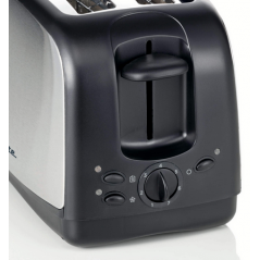 Seleziona tra i 7 livelli di doratura per tostare le tue fette di pane, prepara 2 fette di pane contemporaneamente e servile direttamente in tavola, Vassoio raccogli briciole per una pulizia pratica e veloce.