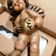 Elegante scultura in ceramica THUN, realizzata con finitura artigianale e colori caldi tipici della tradizione del brand. L’angioletto, alto 22 cm, presenta una posa dinamica e armoniosa, con il caratteristico cuore dorato stretto tra le mani, simbolo di amore e protezione.