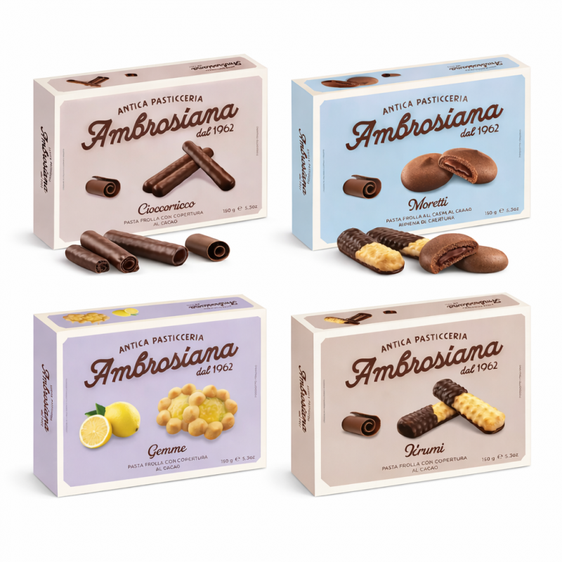 Ispirati alla tradizione della pasticceria italiana, i pasticcini secchi, ripieni di marmellata, decorati con il cioccolato o con lo zucchero a velo, rendono Dolciaria Ambrosiana una grande pasticceria, dove i biscotti non si fabbricano, ma si preparano. Vogliamo dare a tutti la possibilità di portare a tavola un dolce in qualunque momento, come se fosse sempre un giorno di festa.