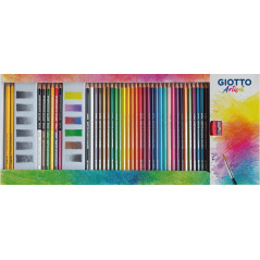 30 Matite colorate acquerellabili Giotto Stilnovo Acquarell, 6 Matite colorate doppio-colore Giotto Stilnovo Bicolor, 2 Matite grafite Temagraph Graphite 3B SOFT, 1 temperamatite,